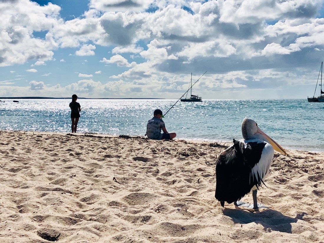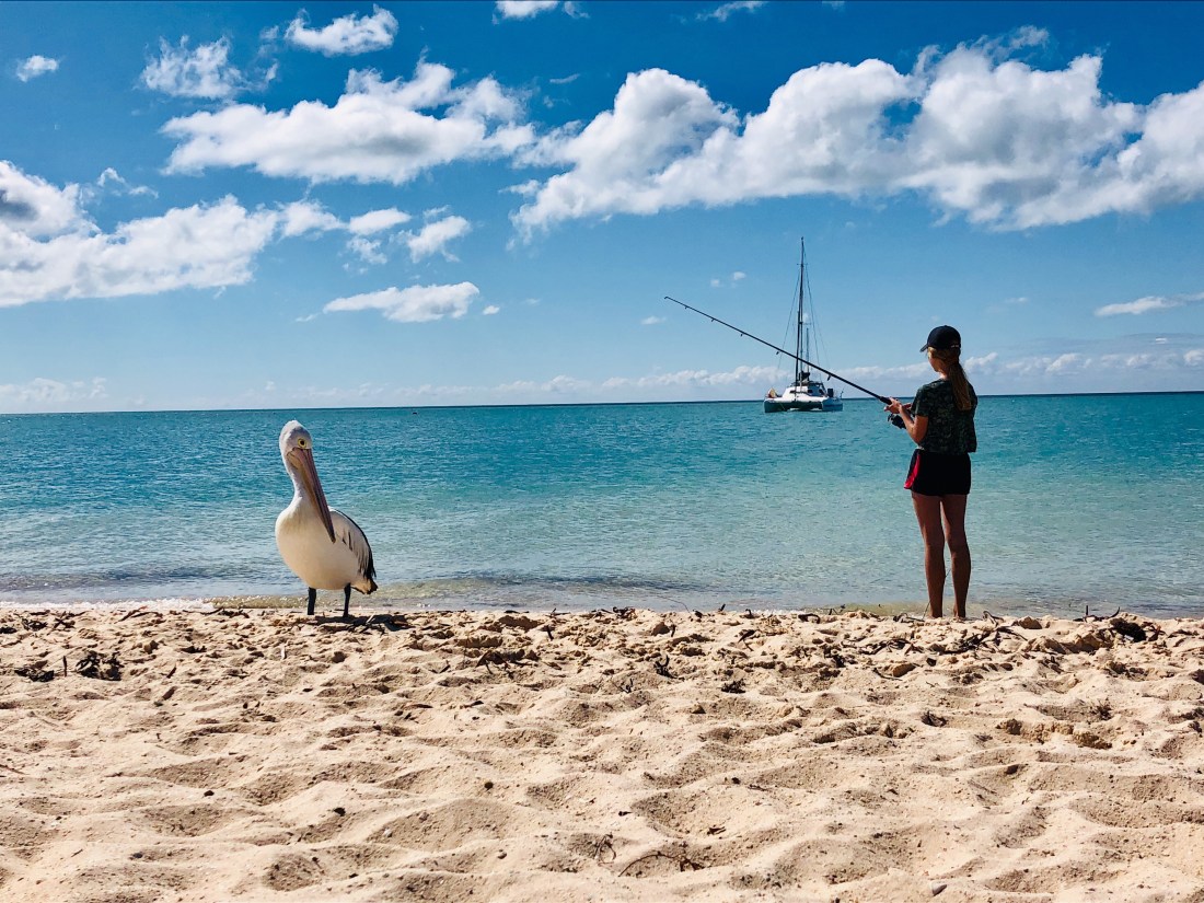 Kids jumped at the chance to go for a fish in this beautiful bay… and the local pelicans wanting the bait to go to them rather than the fish kept them on their toes 😂
