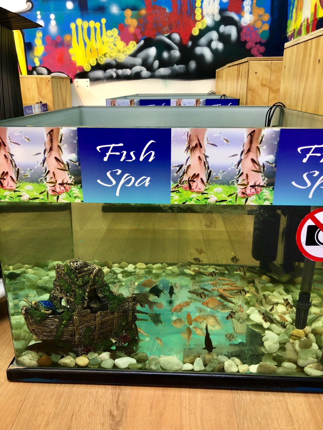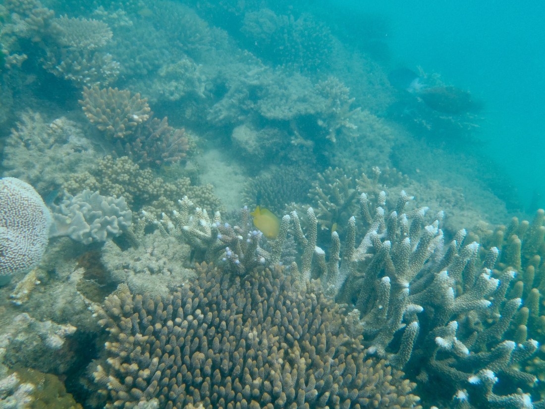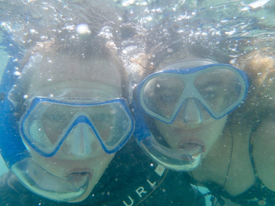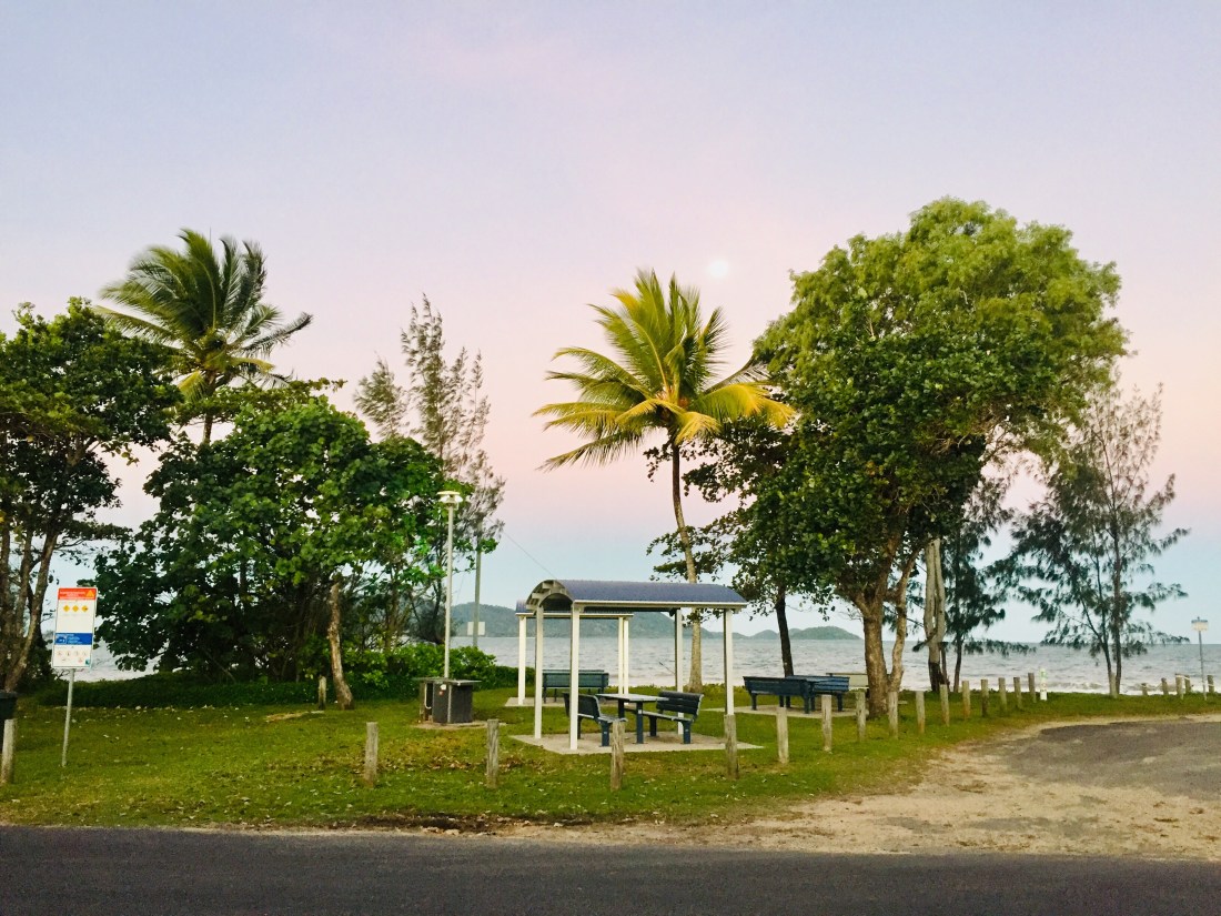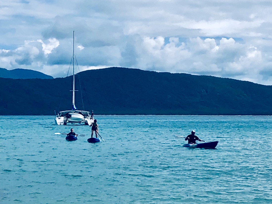 Fitzroy Island is a 45 minute cruise off the coast. On the way out heavy rain dampened more than spirits but by the time we got to the island the rain had stopped and as morning became afternoon we saw more and more sun. We kept ourselves busy with a bushwalk, glass bottom boat tour, bouncing off an ocean trampoline, kayaking and snorkelling around the rocks at Nudey Beach. The day flew by! Upon our return we thought it only fair the fish feasted on James’ feet at the Cairns night markets.