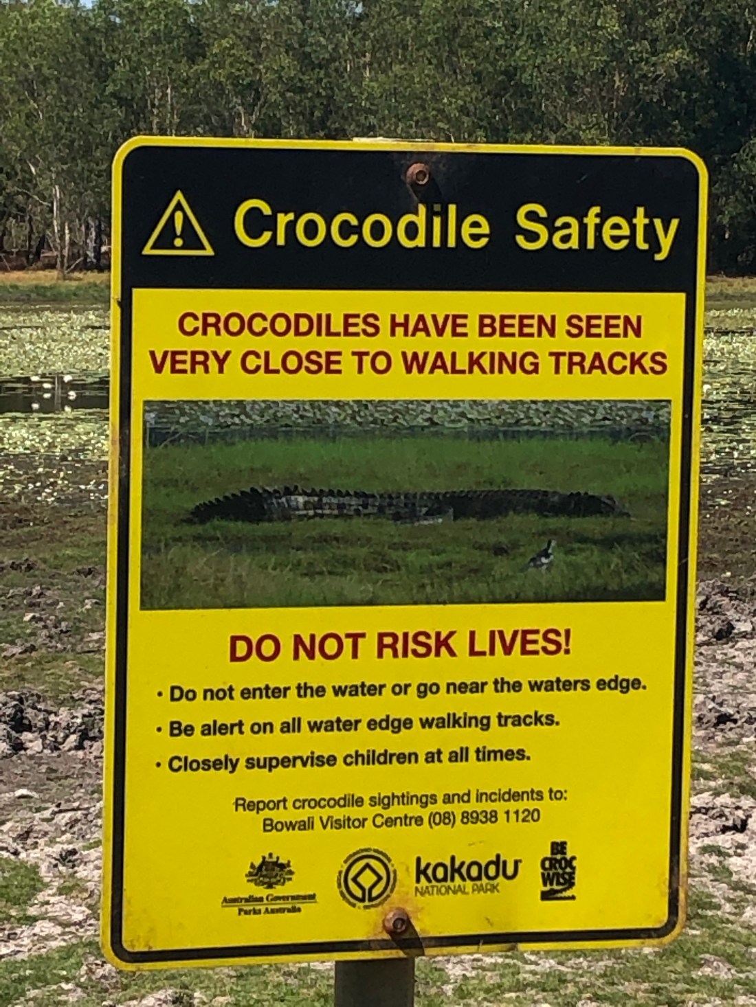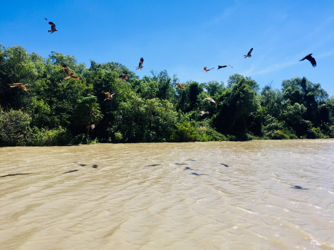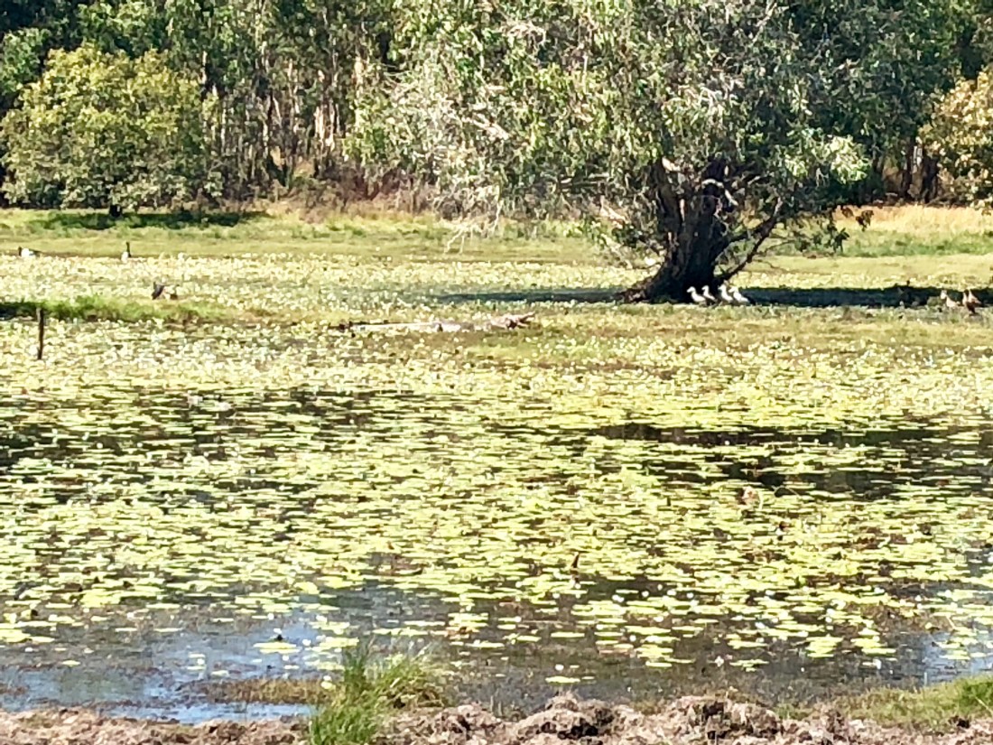 We enjoyed our time in Kakadu, but being restricted to only travelling on sealed roads with the Motorhome we know we missed a lot. Still, at Cahills Crossing on the Alligator River, (the guys who named these places made some mistakes 😂) we got to see our first in-the-wild crocodile lurking near the bank. We also completed some hikes and saw Aboriginal shelters and cave art, and the views from any hill or peak were always amazing. Then, while we were enjoying a walk around Anbangbang Billabong we were happy to see pelicans, jabiru and emu, but the highlight of Kakadu was getting to see a crocodile attack, catch and then start munching on a huge snake…. 🐊🐍