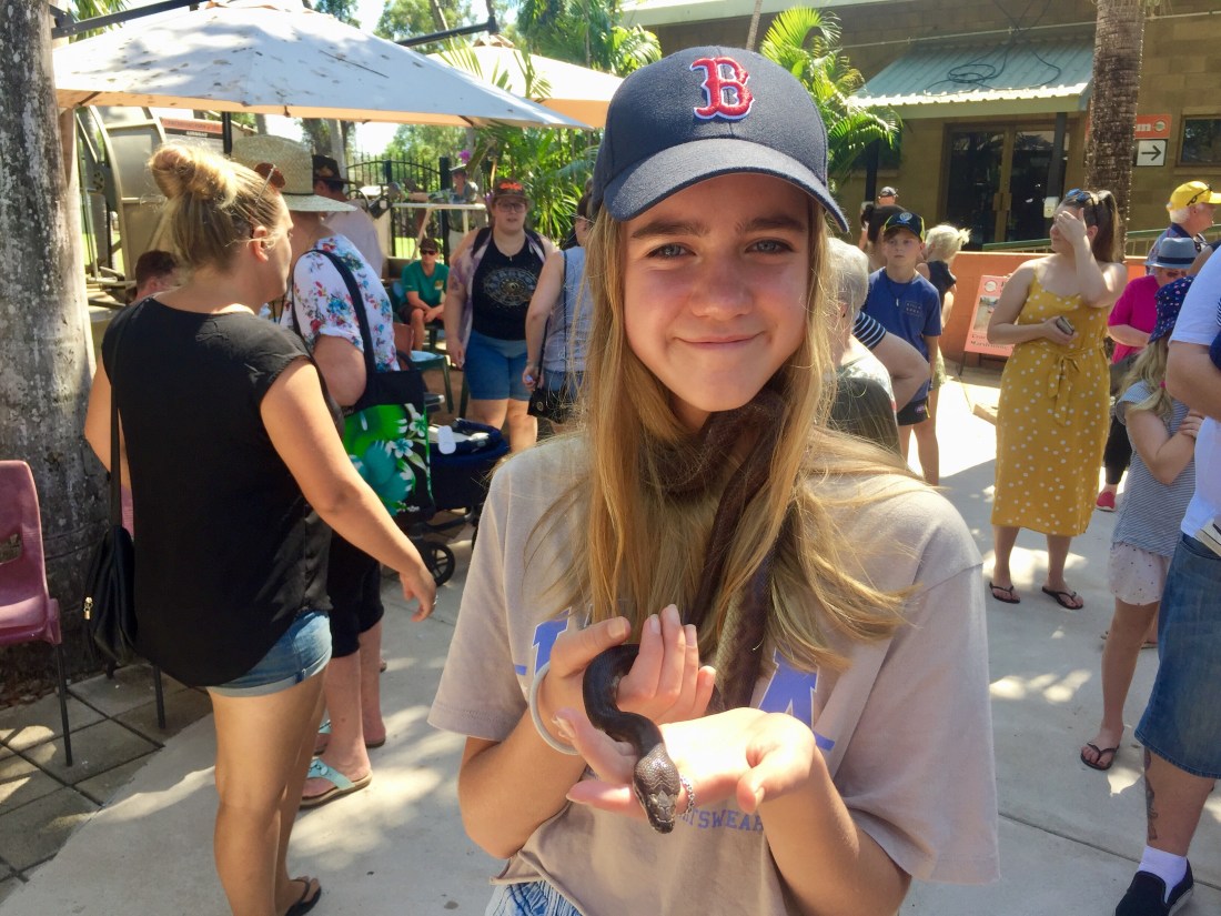 A morning full of crocodiles 🐊 at Crocodylus Park, an afternoon thankfully crocodile free at Berry Springs Nature Park. Both places were fantastic! The kids got to feed a croc each at Crocodylus, as well as hold a baby croc and a python. The park was also a pretty impressive zoo, with a great primate section as well as lions, tigers and plenty of native Australian animals. Berry Springs had a lovely massaging waterfall at the top and a couple of large swimming holes further down. There was also a picnic area, bathrooms and a kiosk. A great day, and we haven’t even gotten into Darwin yet!